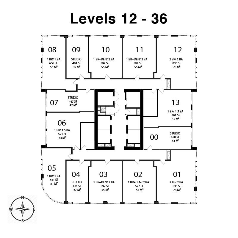 40 Stories / 476 Residences of Studios, 1 & 2 Bedrooms
